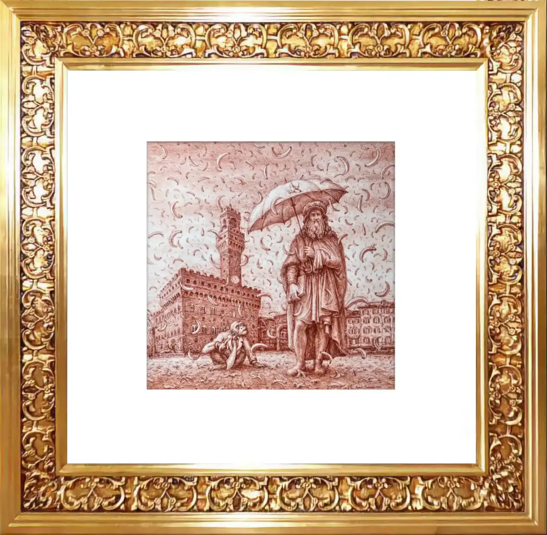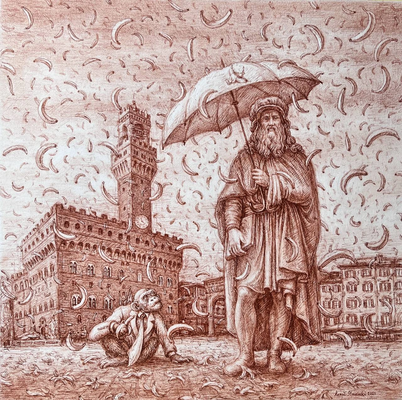 Rysunek sangwiną i tuszem przy użyciu stalówki,