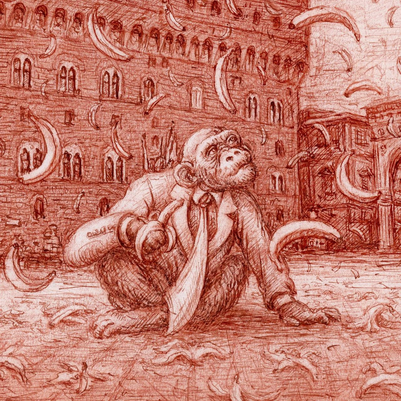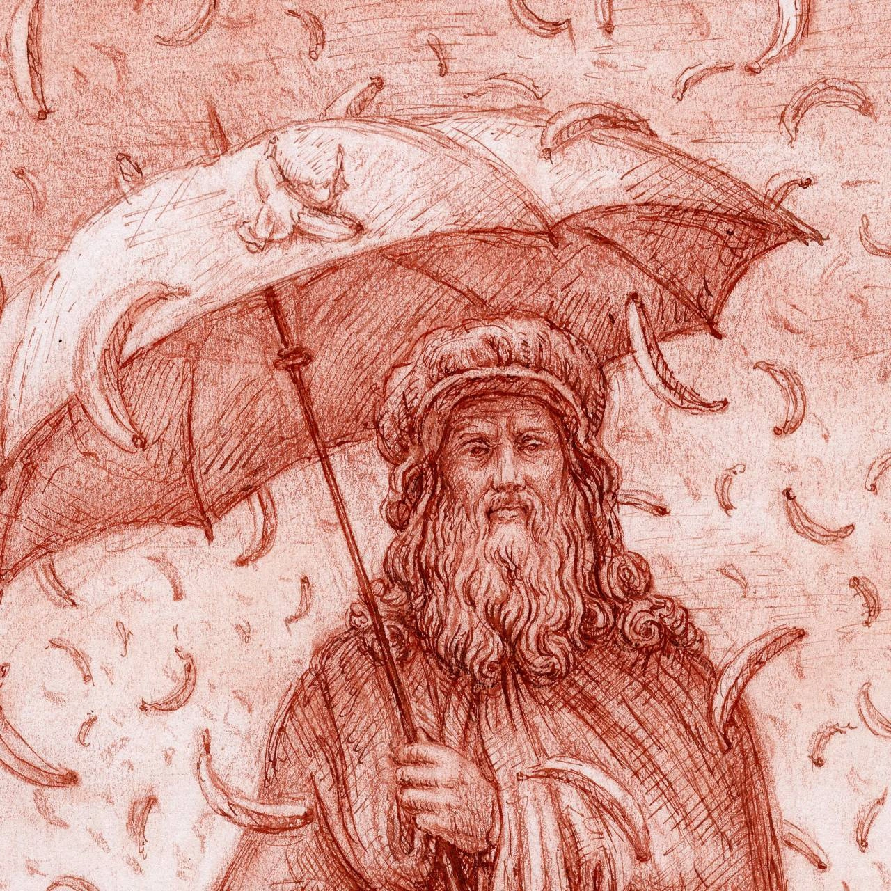 „Kwaśny deszcz” przedstawia Leonarda da Vinci, który chroni swój wizerunek parasolem przed tytułowym deszczem. Postać Leonarda symbolizuje klasyczną sztukę – czystą, pełną harmonii i duchowego sensu, wyniesioną na szczyty renesansowego ideału.