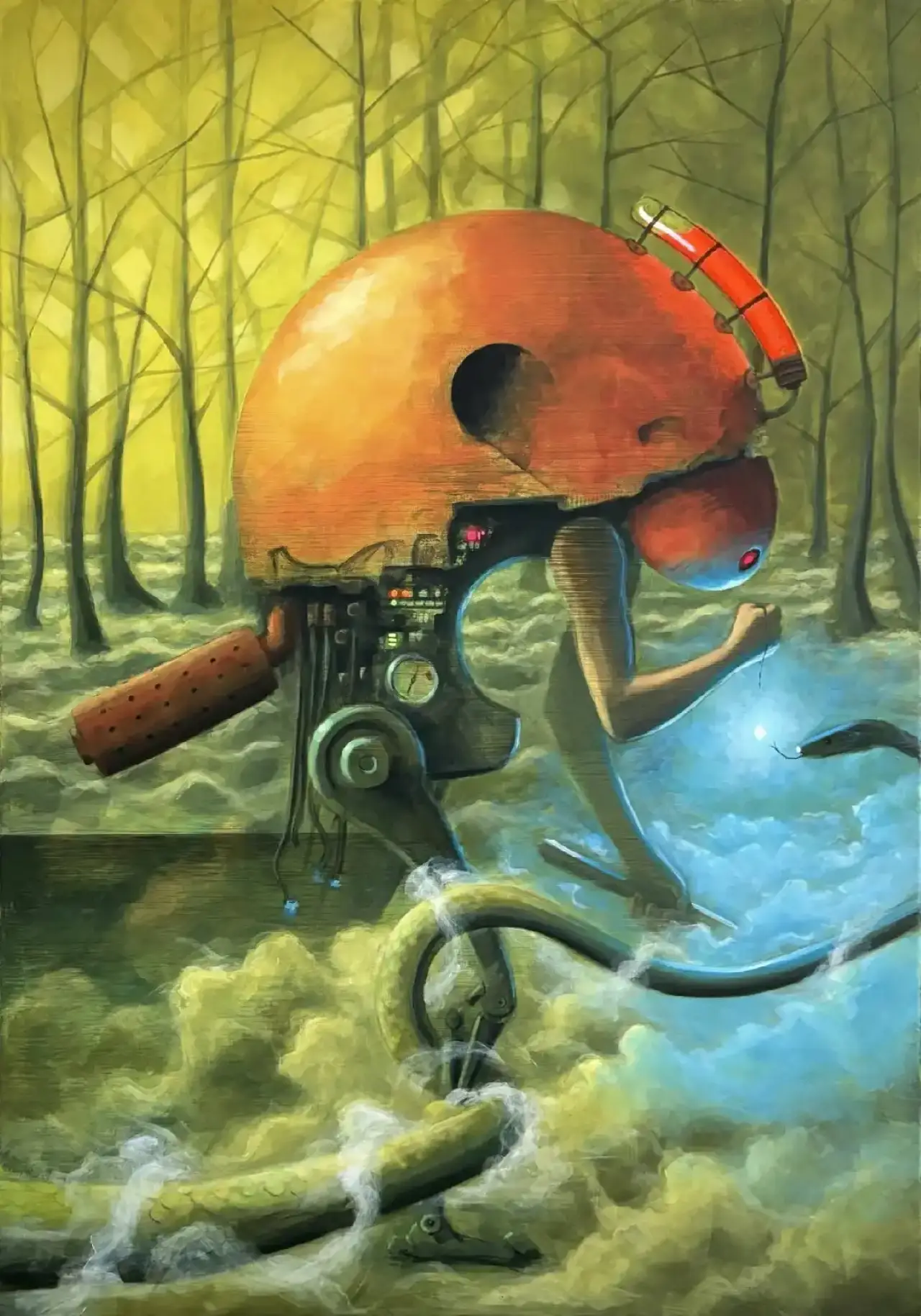 werniksowany satynowym werniksem. Elementy obrazu malowane farbą fluorescencyjną.