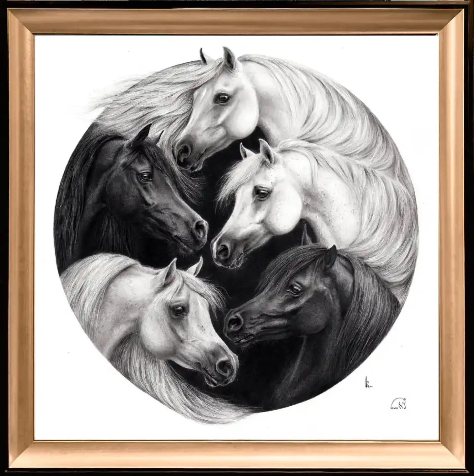 Rysunek ołówkiem na kartonie. Okrąg ma średnicę ok. 40 cm, kompozycja zamyka się w kwadracie o boku 42 cm.